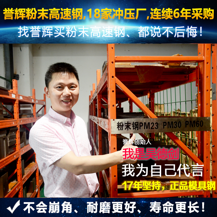 譽(yù)輝粉末高速鋼ASP23預(yù)硬料,8家是不銹鋼沖壓廠(chǎng)采購(gòu),連續(xù)8年無(wú)客戶(hù)退貨。采用霧化粉末冶煉工藝成形,得到的ASP23粉末高速鋼純凈度高,鋼材組織更細(xì)致,鋼材無(wú)方向性。在保證耐磨性的前提下,兼具韌性。