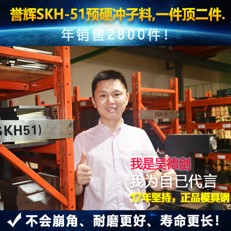 預(yù)硬料SKH51高速鋼譽(yù)輝SKH51高速鋼沖子料,一件頂兩件!譽(yù)輝SKH51高速鋼,不會(huì)崩角的預(yù)硬沖子料。18家沖壓廠(chǎng)連續(xù)6年采購(gòu),無(wú)一客戶(hù)退貨。譽(yù)輝SKH51高速鋼沖子料,500強(qiáng)企業(yè)也在用。連接器上市企業(yè)宇球電子連續(xù)6年...